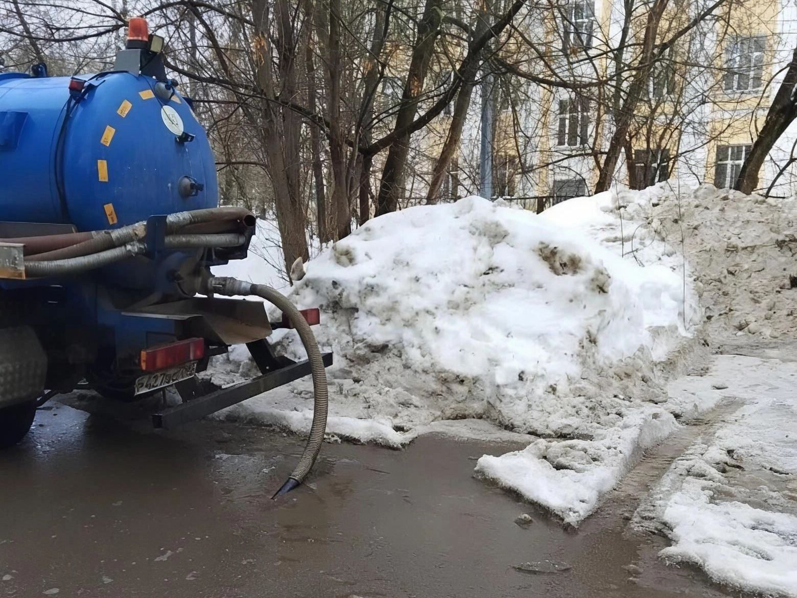 - проведена откачка талой воды в местах с пониженным рельефом для устранения подтоплений с очисткой от снега и наледи дождеприемных люков, ливневых решеток и участков ливневой канализации;